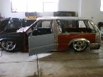 everything is shaved. the bed was shortend 28" for the blazer roof. suicide doors and reverse tilt hood and a shaved fire wall. the fenders were flared 3" to clear the wheels so i can turn all the way down. they are not 4x4 fenders!