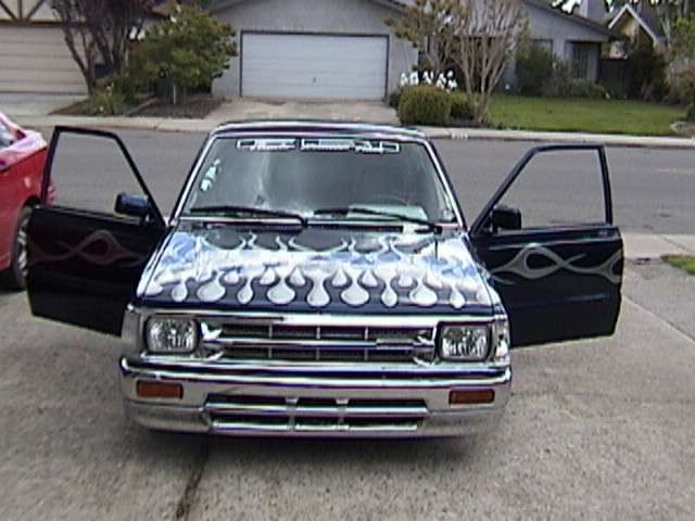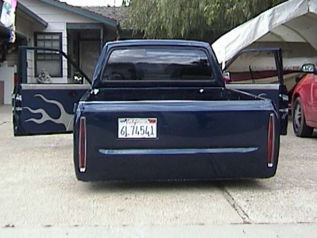 Shaved handles, antenna, gas door. Tailgate skin with caddy lights. 4 runner bumper. shaved mazda signature sideplate.