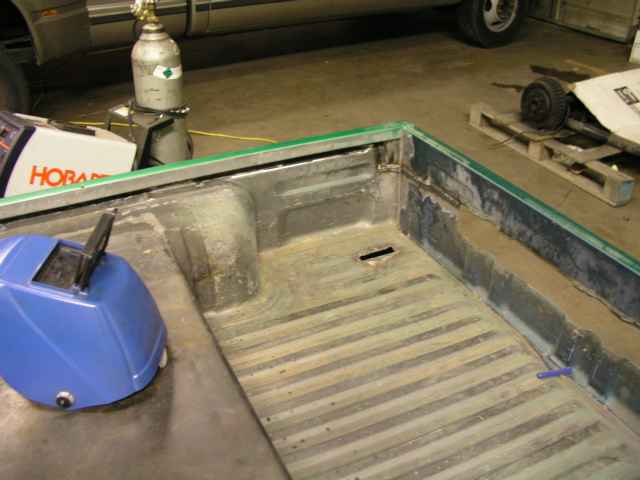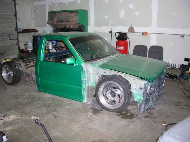 Fully shaved with 4x4 fenders and 4x4 bed all painted with house of kolors planet green 3 inch Bodydrop rear tailgate skin is welded in now