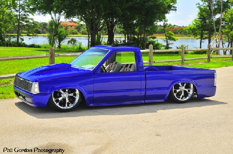 Juice ,Accumalators and 4 wheel Camber supplied by a RX-7 rearend .Tubular Front control arms. 8inch cylinders in the front and 6inch cylinders in the rear . 4 LUG all around