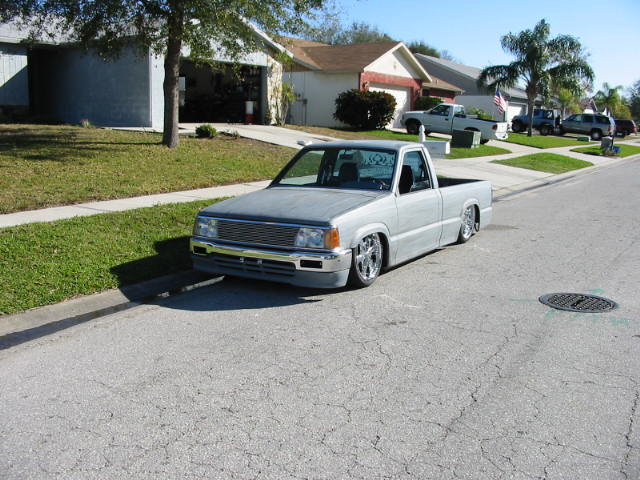 01+ ranger headlights, custom billet, custom 4x4 yota bumper,shaved emblems,every thing from firewall forward cut out and a custom core support and inner fenders were fabbed up and welded to shaved firewall for an ultra clean look and structure,shaved mirrors, door handles sidevents, gas door shaved inside and out, cando skin out back, shaved taillights, tilt bed, and much more