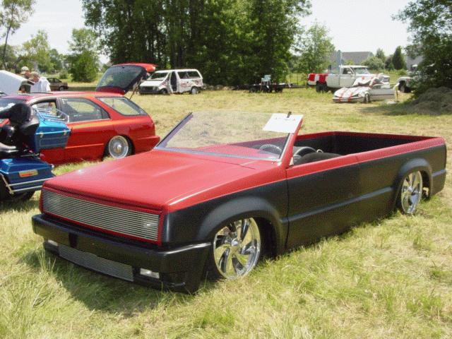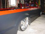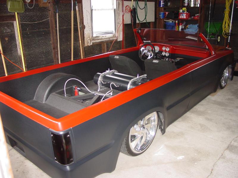 Shaved Handles, Shaved Mirrors, Suicided Drivers door, upper and lower Phantom Grille, Windshield Chopped, Chopped body, Uni-bodied, Flat Hot Rod black with Blood red on top.