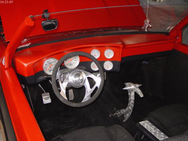 Black Tweed with lots of custom ONE OFF Billet pieces, Custom Fiberglass dash, Auto Meter Gauges, Sunfire Seats, Billet Specialties Steering Wheel