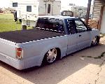 shaved tailgate handle, roll pan, antenna, gas door, chrome bumper and grill with 4x4 endcaps, 4x4 front fenders and box, gas tank from single cab relocated to box, altezzas in the rear and clear turnsignals up front with the h-4 conversion headlights, and a custom made bed cover
