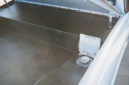 Integra buckets covered in tuxedo grey tweed and denim fabric, Budnik Trilogy steering wheel with half wrap in denim fabric, Colorado RocKnob gear shift handle. Tuxedo grey and denim tweed throughout. Custom center console and sub box covered in tweed. Electric windows and painted dash pieces. Key fob for remote opening/closing of windows, raise/lower bed cover, raise/lower truck and pop driver/passenger door. Interior done by Mooner at Moonlight Customs.