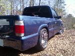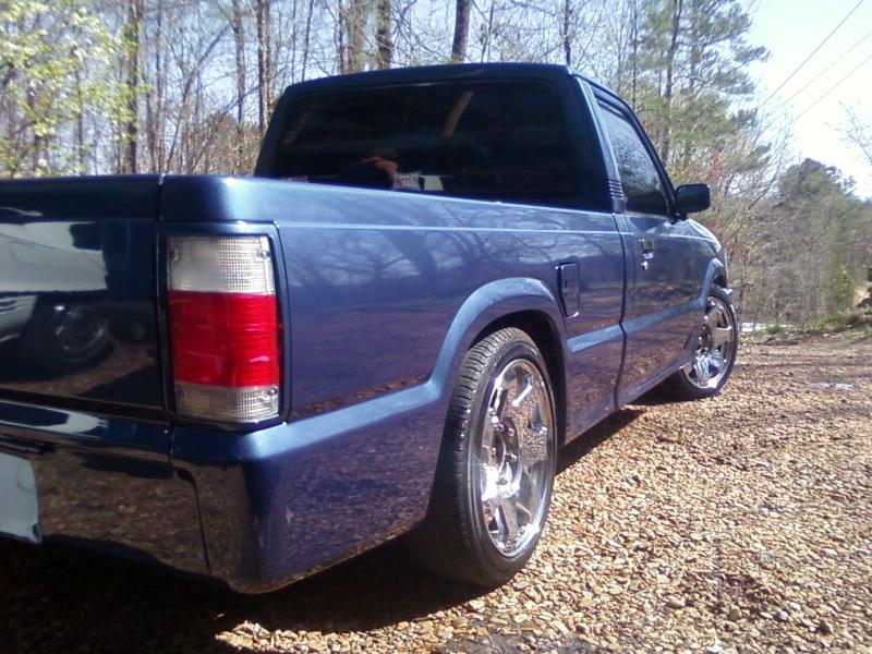 capsion blue wit a lil purple mixed in, welded up the 2 holes in the factory roll pan, shaved antenna and emblem holes, chrome grill, clear lights all the way around....for sale!!