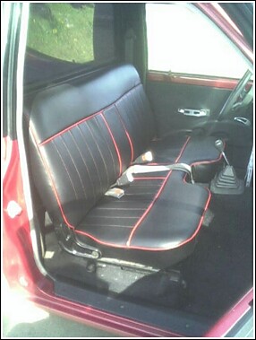 black vinyl door panels with a tribal in it ,painted dash black, had stock seat redid