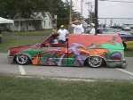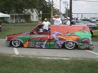 BD 2 3/4" Convertible. Toy bumper and valance. Clears all around. Mirror rear window (no it's not tint!). Burnt orange paint w/wild 22 color flames/tribal graphics