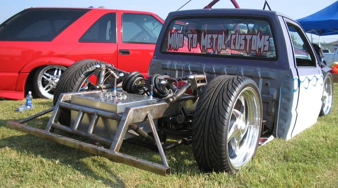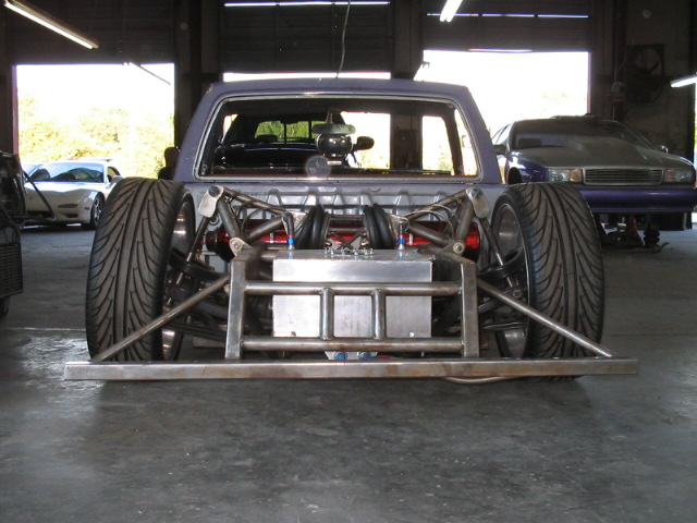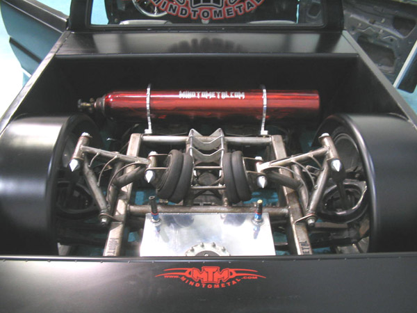 3/8" Herion valves, Slam's RE7 bags all around. 240 SX IRS (got rid of the 4 lug). One off front and rear A-arms. Cantilever rear setup. stainless 3/8 air line.