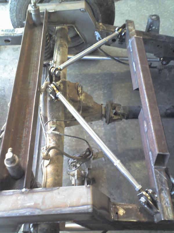 dropped 3 1/2" in front 10" cylinders, 4 link and fuel cell in rear