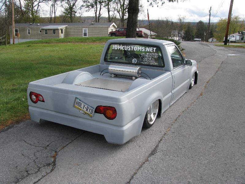 Shaved doors, antennea, emblems, gas door, tailgate/rollpan, bed seams. Toyota chrome mirrors. Chrome trim. Clear glass. 4x4 sheetmetal, FI hood. New OEM lights, Z4 tail lights.