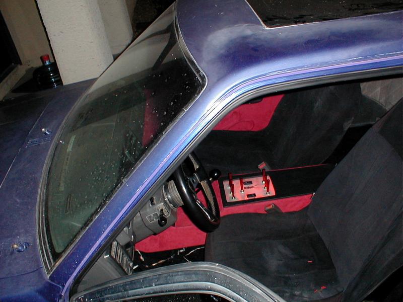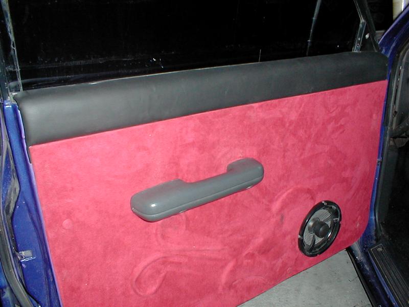 New door panels, shitty seats, custom center counsel with switches, black carpet.