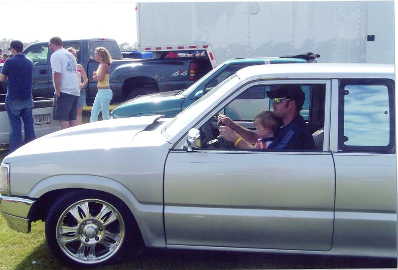 Body droped,Shaved handles ,tailgate, antena, molded in roll pan, smooth wiper cowl, s10 cowl molded into stock mazda hood, sheet metal bed,chrome grill, yota front bumper, shaved side markers, diamond motor cycle mirrors..