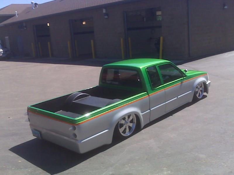 Shaved emblems, mirrors, antenna, wiper cowl, windsheild pissers, door handles, locks, gas filler door, all body seams, cali-combo, and taillights. Frenched clear '59 Caddy taillights, Clear bumper and corner lenses, Billet grille insert, Gas tank removed and fuel cell placed under the bed, Kuryakyn motorcycle mirrors, 4x4 fenders and bed, Inside of bed has completely smoothed sides and floor with wheel tubs and gas filler in floor for fuel cell then sprayed with bedliner, Front bumper has frenched license plate.