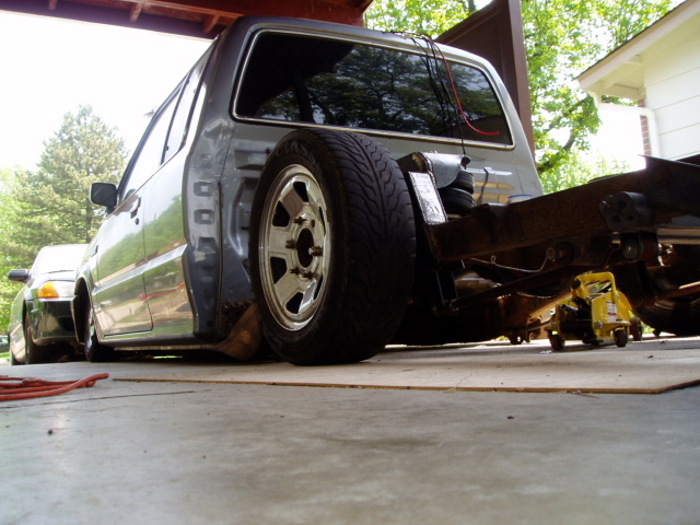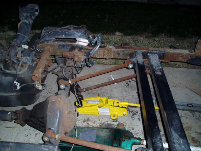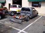 full air ride. 2 M.I.C. 1/2" mass-flow valves, 2 M.I.C. white face gauges, 1/2" air line, 2 compressors, 2 5 gal. tanks, 4 2500 bags, reverse triangulated four link, 6" monster notch. front/back right now.