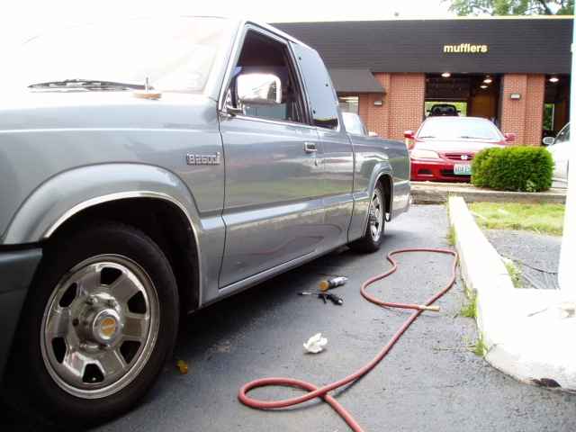 spray in bed liner, tinted windows, euro clears, phantom grill,chrome bumpers,mirrors,wipers,trim, getting ready for body work and paint.