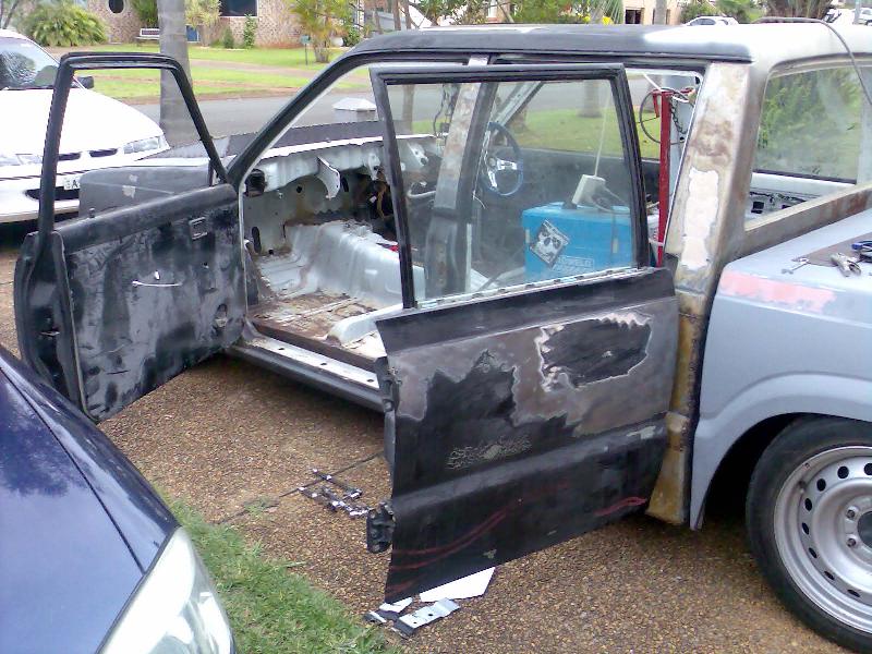 2-tone paint, 2 inch body drop, suiside rear doors, iron cross tail lights, fully shaved, full roof sliding rag top, hood cowl, billet grills in grill and front bar, 04 toyota hilux 4x4 front bar
