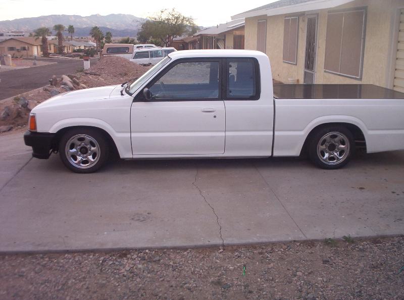 full air bag setup with four link, notch the frame, sliding ragtop, fully shave the whole truck, suicide the doors, 20" wheels