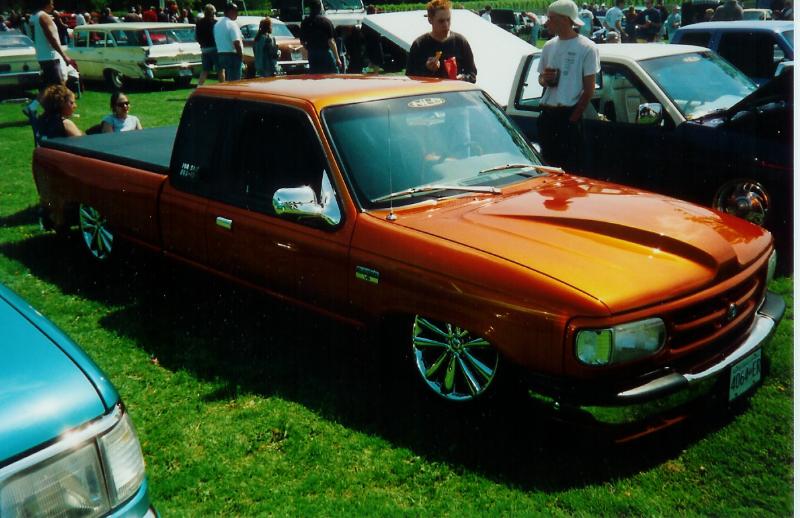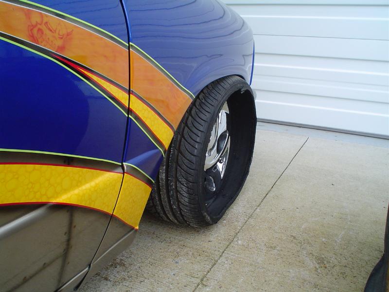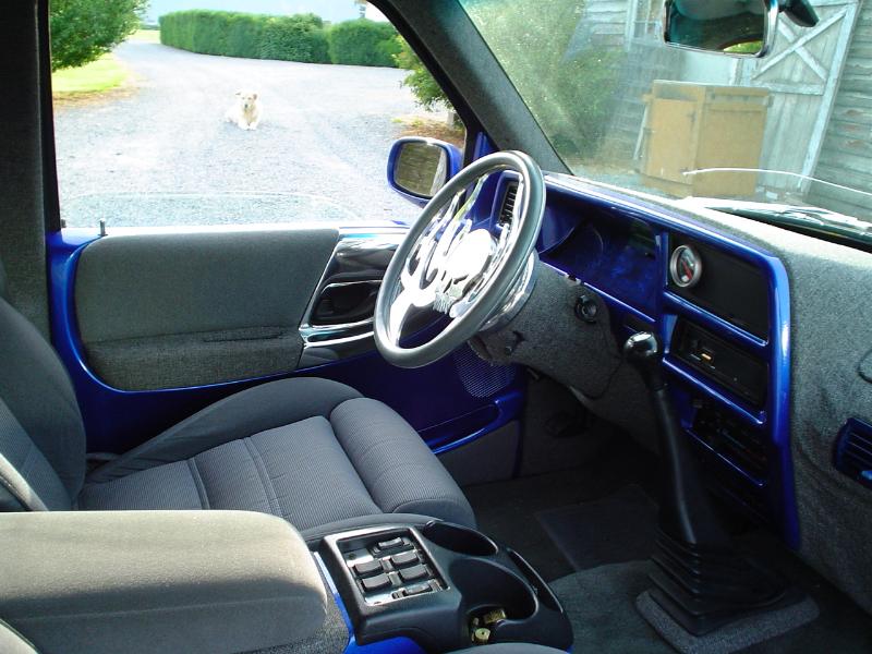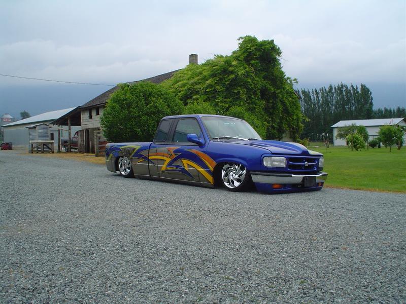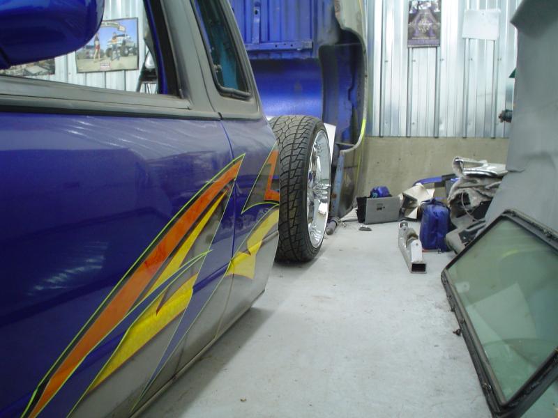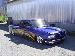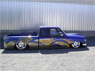 Fully Shaved, LED tails, clear front marker lights, Tubbed firewall and bed. 350Z blue, with lots of graffics(done buy Aaron)