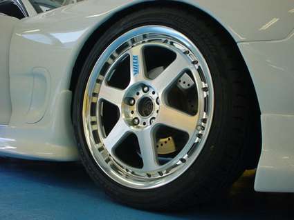 Silver Volk racing wheels (17 in front, 18 in back), Perelli rubber, 225/35