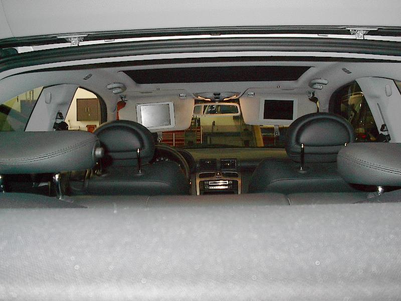 Clarion In dash with flip up display, XBOX under glove box, each visor is a flip down LCD screen, 2 12in JVC 800watt subs, with 1460 watts, all in custom encclosure