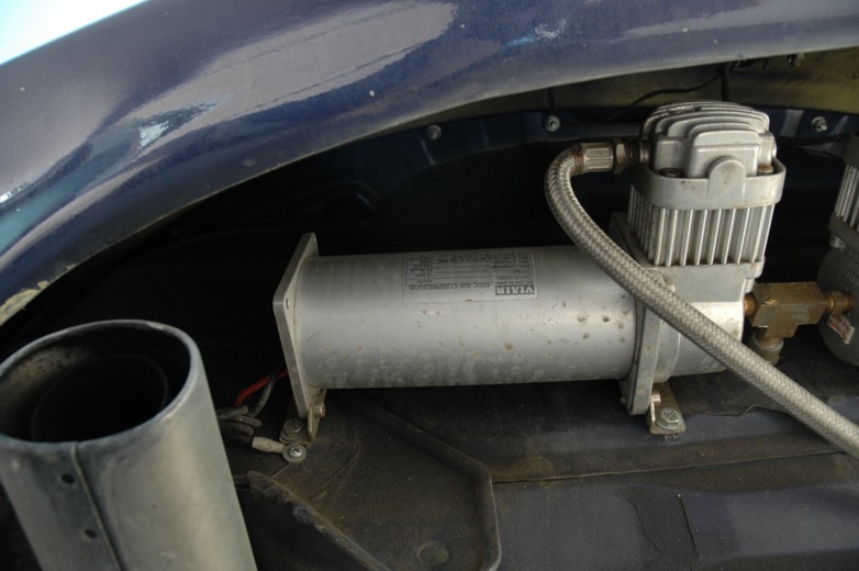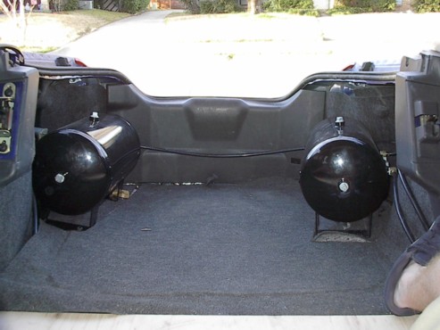 Full air ride: 1/2"lines, 3/4"valves, 2 Viair 450 compressors, 1 eight gallon tank, mcpherson strut bags, 10switch lunchbox