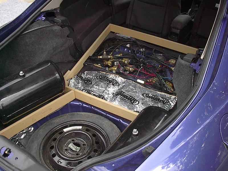 , infinity 6x8's, 7"audiobahn monitor in custom modular overhead console, Optima Yellow Top Battery, Panasonic Headunit, PS2, soundstream 15, alphasonik 1600watt amp blah blah blah