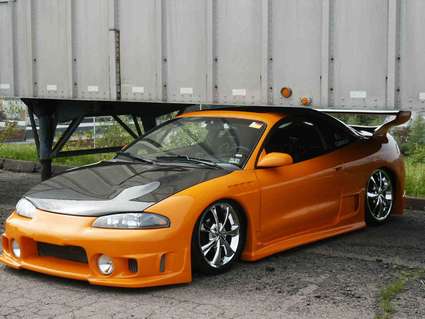 Sensei front piece, Blitz sides and rear, shaved bottom piece of bumper, shaved middle tail, shaved reverse lights, molded handles, shaved keyholes, 2001 Eclipse gas cap, plate frenched back into bumper, 6 1/4 inch PIAA foglights, completey molded, z3 fenders, carbon fiber euros, shaved emblems and corner lights, Carbon fiber hood