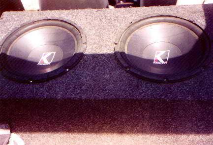 PIONEER CD PLAYER, 2 KICKER 12'S, ALPINE V12 AMP WITH A STINGER 1 FARAD VOLTAGE READ OUT CAP.