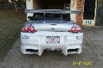 Euro tail lights, aerospeed gas cap, clear third brake light, chrystal clear turn signals in front, clear reverse lights, 2 1/4 catback with dual sebring mufflers, Nakayama 10 " double stack wing, carbon fiber hood with APC hood pins, black vinyl eyelids on headlihgts, Hyper industries blue HID bulbs,red L.E.D. lights custom installed in headlights,B0MEX body kit,SHAVED DOOR HANDLES