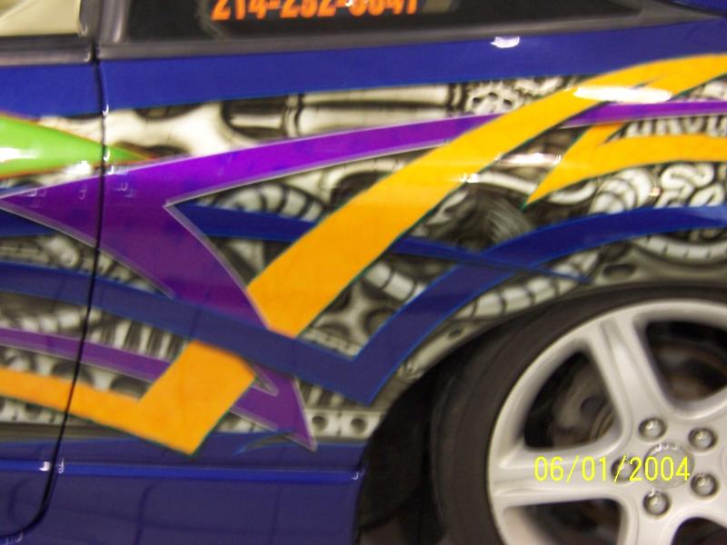 Complete Kustom Paint and 80 Hours of Airbrush Work , Kustom HID Head Lights, Alteeza Tail Lights, Shaved Squiters, Door Handles, Rear Wiper, Frenched and Laid Back Antenna, 2002 Eclipse Alluminum Gas Lid Flush Mounted