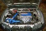 4G63 2.0 DOHC: Turbonetics T04 Turbo, Apexi S-AFC-II, Spearco FMIC, HKS BOV, custom 2 1/2" turbo piping, ported manifold, 3" exhaust from turbo to axle then 4" from axle to tip (NO CAT), MSD 8.5mm wires, denso plugs, custom air intake - K&N Filter -(relocated at front bumper passenger side) 660cc denso Greddy injectors, Turbo XS Boost controller, aeromotive fuel pressure regulator, walbro fuel pump - boosting at 21psi.