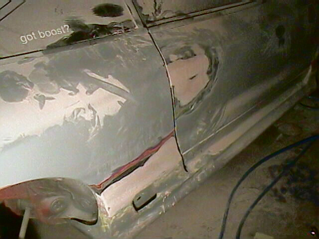 blitz kit - molding in - then painting white. shaved remote door handles. shaved rear window wiper. shaved antenna. i have: gsx wing, diablo side mirrors, roof scoop, and drift style front bumper - all to go on soon - just gotta finish molding. Blue under body lights, blue lights behine fenders, blue strobes in headlights