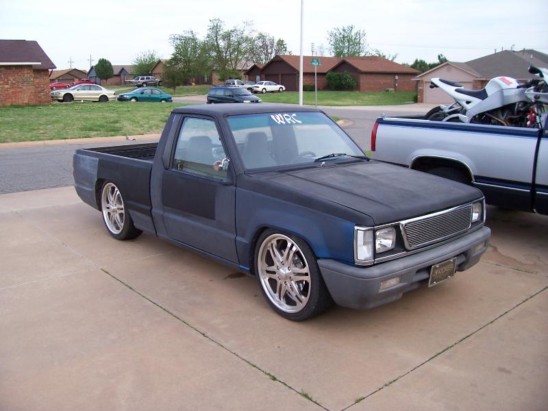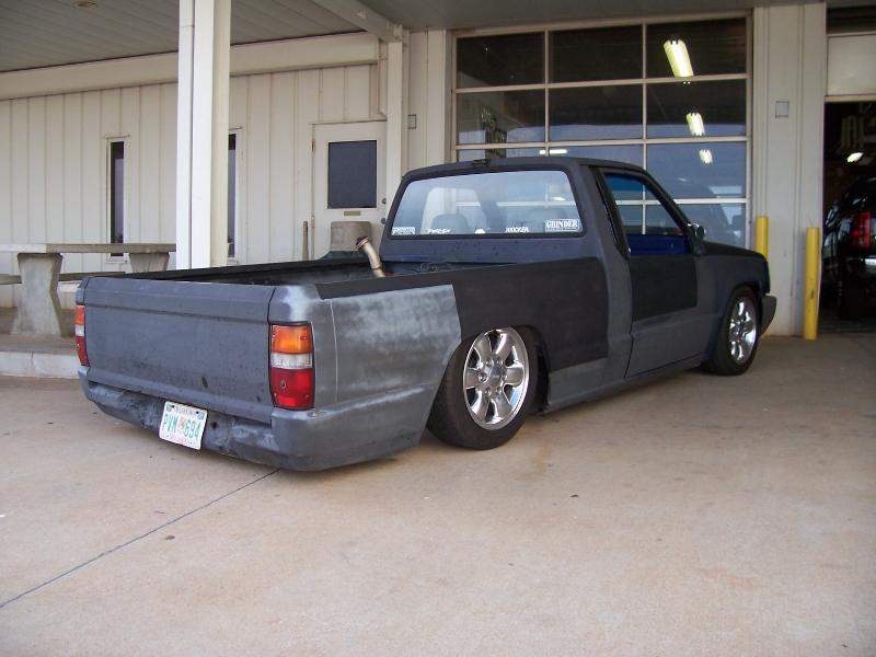 2" drop spindles, triangulated 4-link, slam rs6's up front, firestone 25's in back, SMC valves, modified lower control arms to fit 16's with the drop spindles