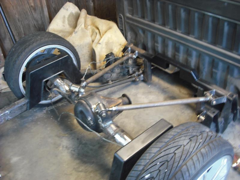 Bagged FBSS, notched, SD 4 link, bag behind axle, Slam 7s in the rear, Slam 6s in the front. Pie cut upper and lower control arms, custom strut arm to triangulate the lower arm, 5 gallon slim and skinny under the bed, 8 SMC 3/8 valves. I think thats about it