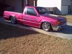 PPG Magenta/w grafics & murals. A couple of layers of clear with microflakes. Had to shaved all the handles, gas filler door. Mold in a roll pan & factory chrome grill.