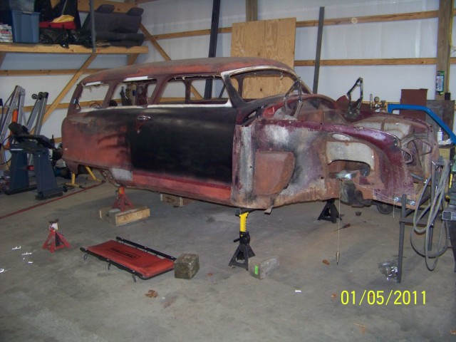 This is jamies (outkastwagon51) wagon. Plans are to redo the mustang II front crossmember and to bag it. We are going to be using a michigan metal works 4-link kit and behind the axle bag brackets for the rear.