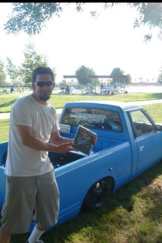 2" drop spindles, toyota hubs machined for nissan spindles. 83 .yota rear end. back half'd bags on bars set up in rear.