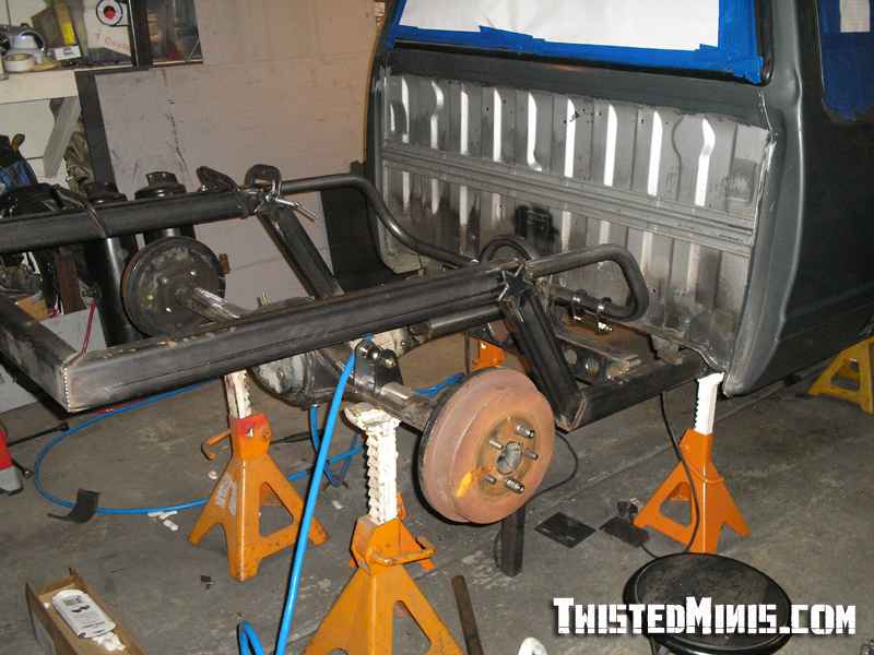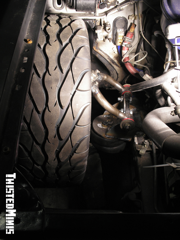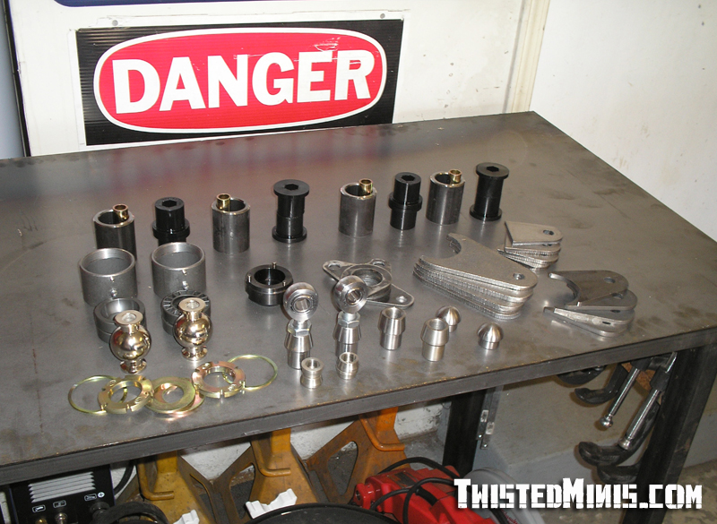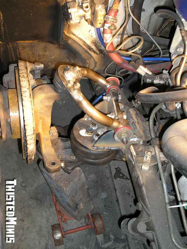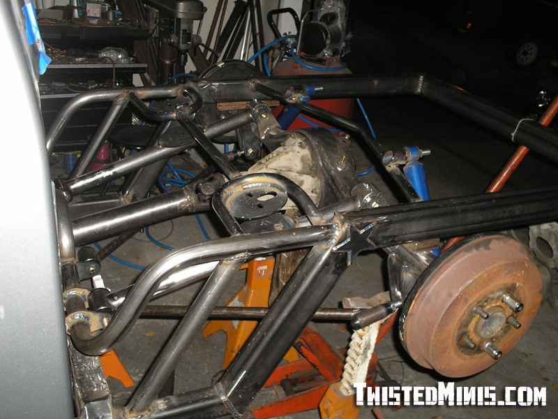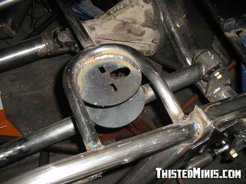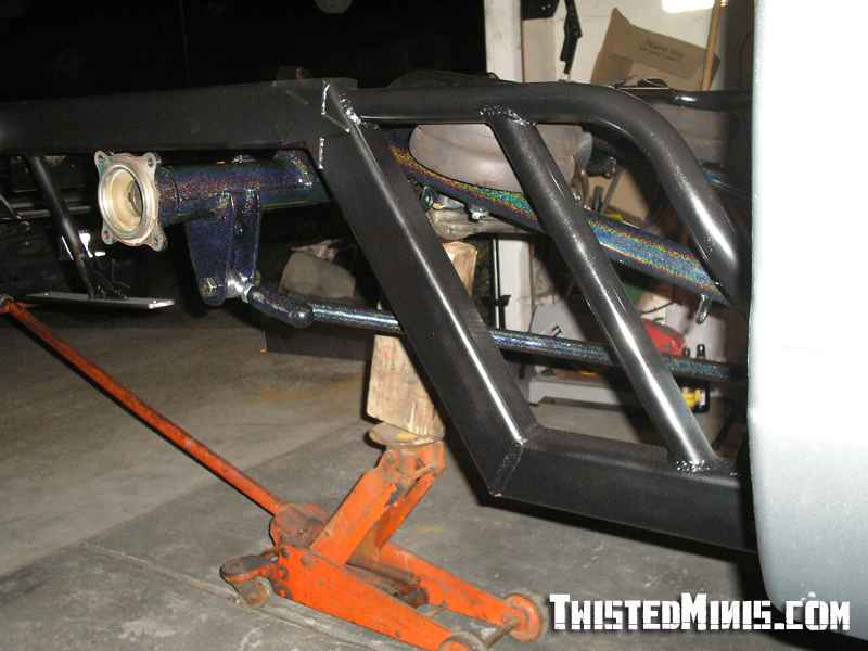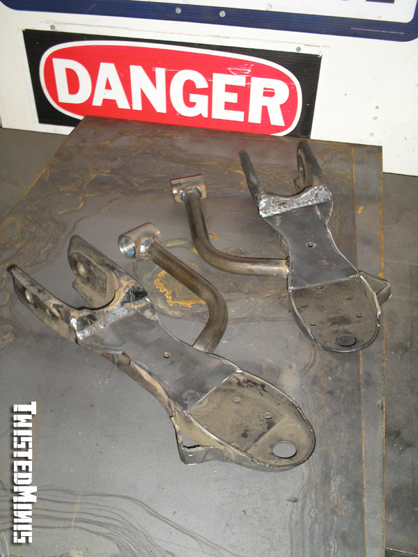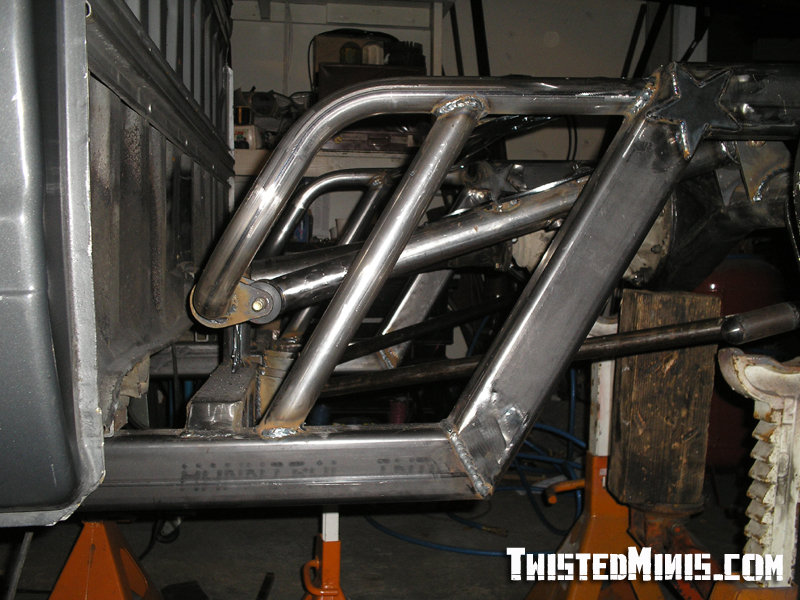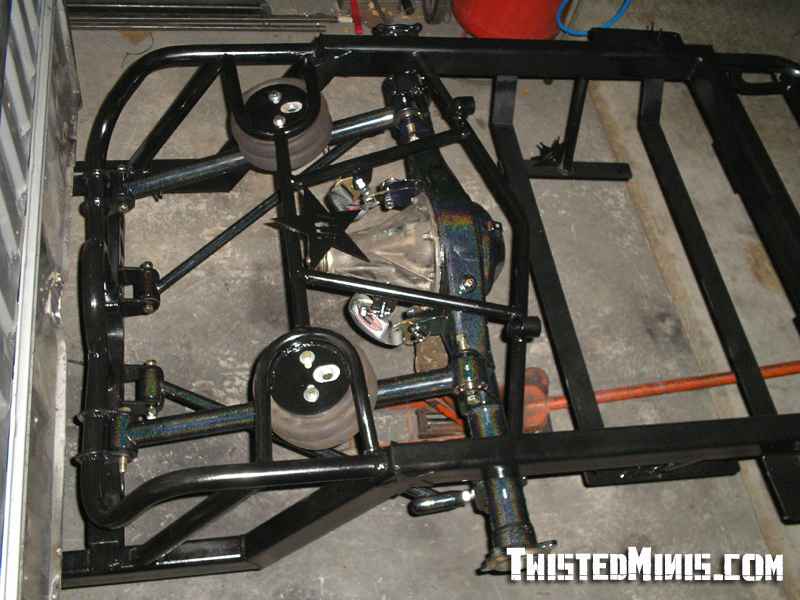 Backhalf, Satchell link for the low roll center, and a chain bridge. Built for 3 wheeling. Rebuilt front suspension. Bilstein shocks all around.