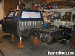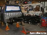 8 spark plugs. Dropped 1.5", sectioned oil pan, bodydropped air cleaner box.