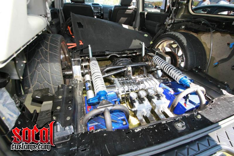 3" dropped spindles made by Max from Bio Kustumz. Cantilever Hydro/Coilover suspension from HYDROHOLICS.NET. Chevy solid axle, parallel 4-link with watts link.