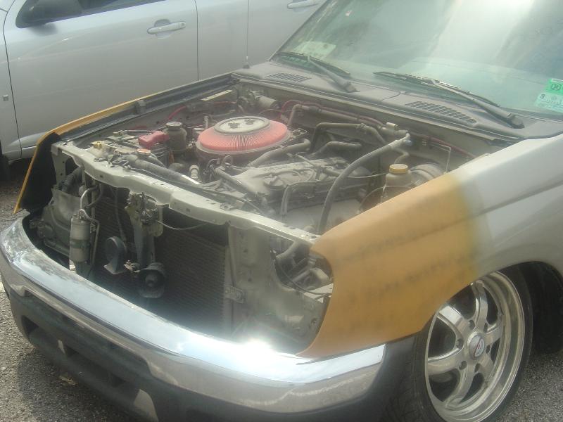 fully shaved,3 color leds in tailgate skin,bagged stock floor body drop,20 inch wheels,custom cowl hood,smooth bed floor ready for paint,04 trailblazer front end conversion