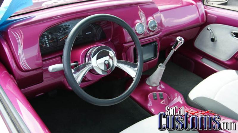 Fully shaved, sheetmetal bed, DuPont Hot Hues Perplexed Pink, lots of pinstriping