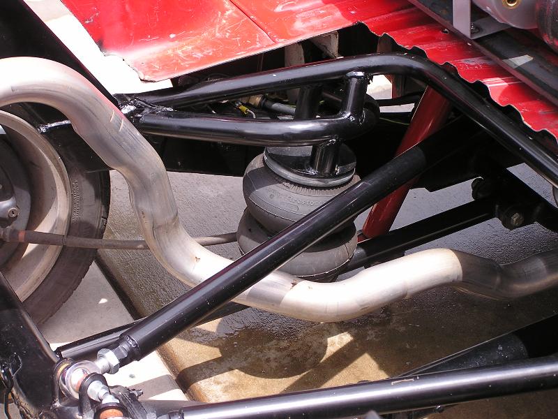 WELL....THE FRONT IS BAGGED WITH 2500 FIRESTONES. THE BACK HAS BEEN 4LINKED AND BAGGED BY NICHOLS AUTOFAB (928-708-0300) ALL THE TUBE WORK AND BAG MOUNTS YEA WELL HE DID IT. THE NOTCH ON THE OTHER HAND WAS THE BRILLIANT IDEA OF MINE TO BE DIFFERENT FROM EVERYONE ELSE NOW I KINDA DONT LIKE IT.