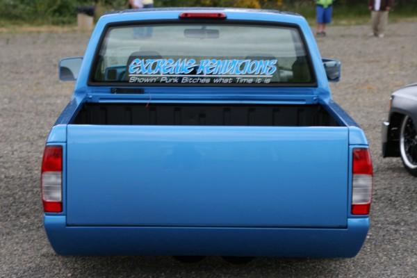 shaved tailgate and rool pan. emblems, antenna.bedliner. custom paint with ghost flames