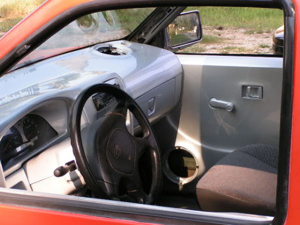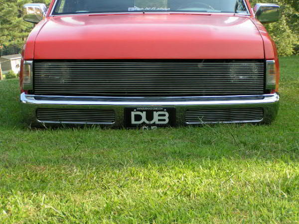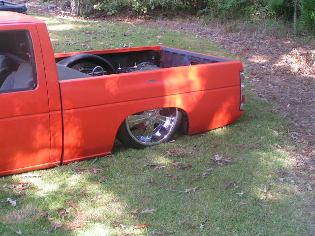shaved hood emblem, hood squirters, door handles, 3rd brake light, tailgate handle; orange primer- i swear it's primer stock floor bodydrop, bout 3 inches, enough to lay rocker.