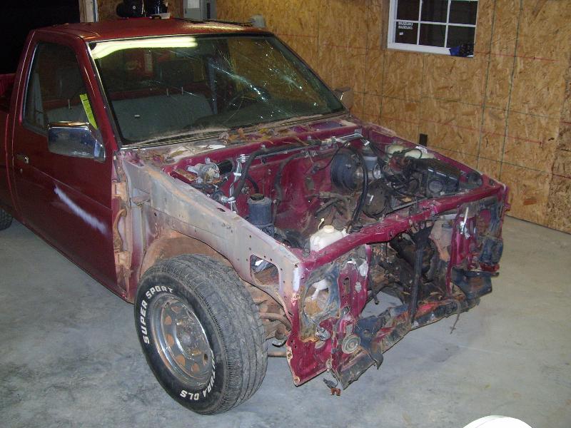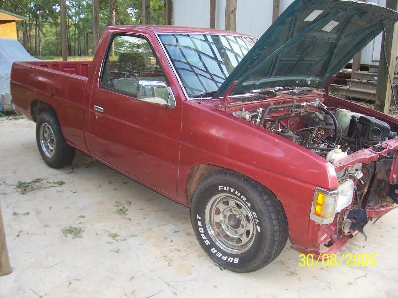 Shaved tailgate handle with nissan relocate in the center. Billet inserts in the bumper and grill.. Clear corners, Custom crome motorcycle mirrors, Billet wiper cowl vents, shaved hood squirters and hood emblem. Black euro tailights and a molded in roll pan..