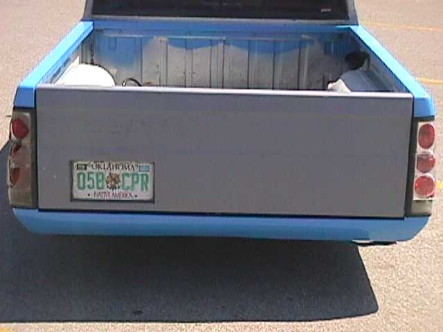 Billet grill inserts and billet windshield cowl vents. Shaved: door handles,passenger side key hole, tailgate handle, gas door, and antenna. Molded in smooth roll pan, tag in tailgate (thinking bout changin that). 4x4 fenders. Clear corners and euro tails. Toyota bumper and valance (not on truck yet). I''m gonna paint it soon. AFter i finish the endless task of bodywork. (i like it though)