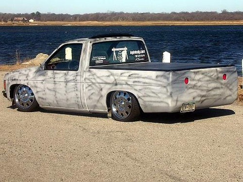soon to be house of kolors black cherry kandie with tribal graphs so far finished suicide pass door, shaved door handels and key holes, cowl, tailgate handel, tailgate, tail lights, body line across back end, roll pan, hood squirters, hood, antenna hole, billet grill up 2 date tail light led conversion plus many more to come hehehee