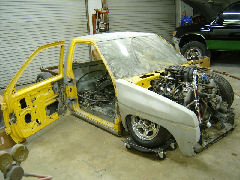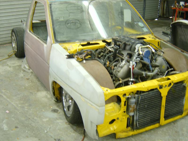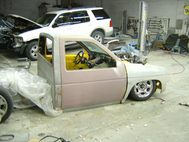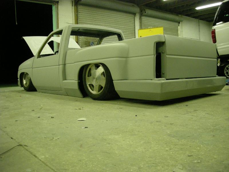 currently a boxed nissan . Alittle in this box alittle in that box. othr than that i've only got a cab right now sold the bed for parts.I've shaved corner lights, handles,locks,antenna smooth back wall, shaved and customized wipper cowl,mirrors, and i'm working on the roof next. 3.5in BD cowl ind hood shaved hood vents and squirters 95 grille, 97 chrome bumper tubbed for 20's suicide doors